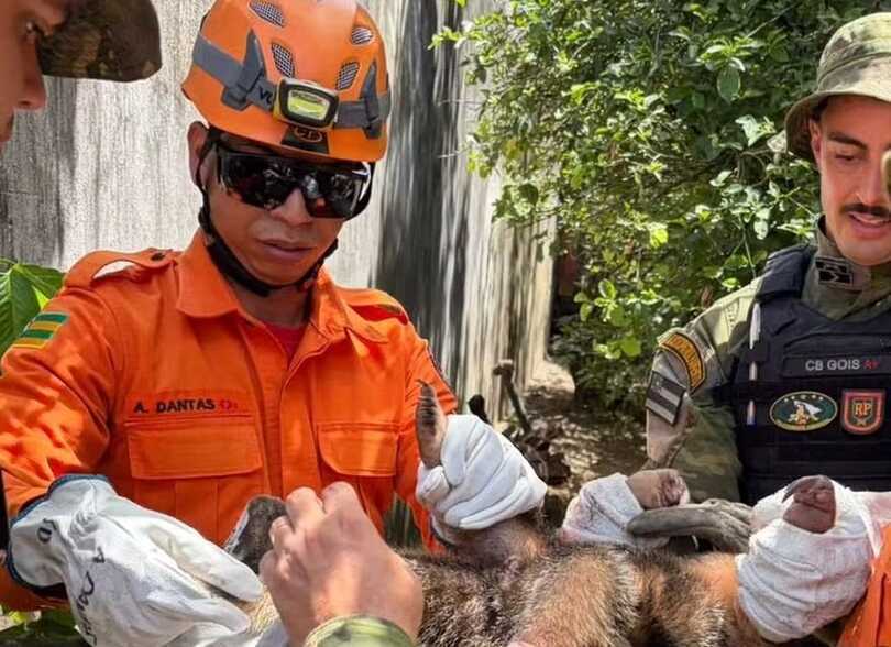 Tamanduá é resgatado após risco de ataque de cães em Aracaju
