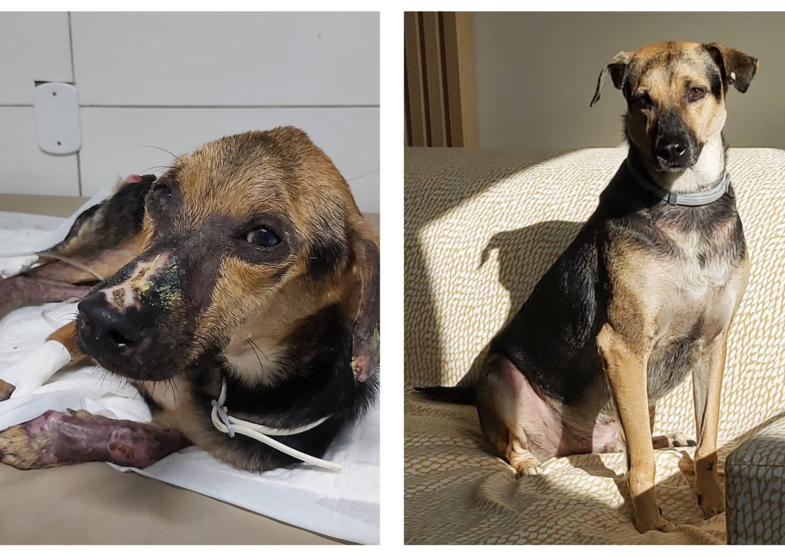 A família de Tom é tutora de mais quatro cãezinhos. Resgatado já adulto em 2021, o animal foi encontrado em estado grave de leishmaniose e com baixo peso, apresentando apenas 10 quilos. Com o tratamento adequado e acompanhamento veterinário contínuo, Tom hoje pesa 28 quilos, o que evidencia a evolução clínica e a resposta positiva ao protocolo terapêutico adotado.