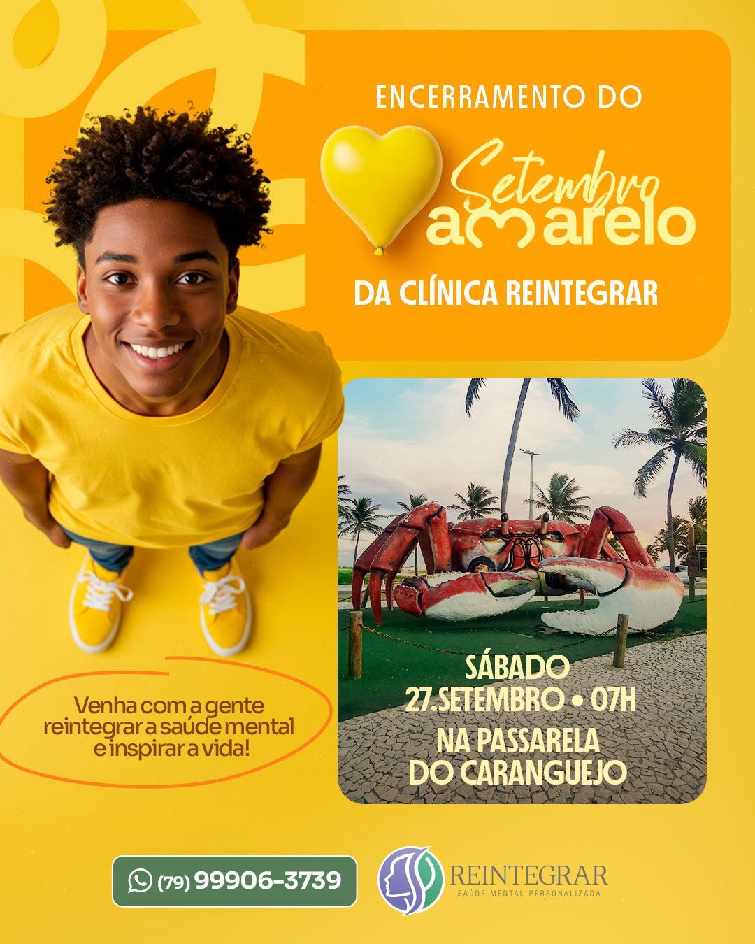 No sábado, 27 de setembro, a partir das 7h, acontecerá uma ação especial de encerramento da campanha Setembro Amarelo, na tradicional Passarela do Caranguejo, em Aracaju. O evento tem como objetivo reforçar a importância do cuidado contínuo com a saúde mental e inspirar a valorização da vida.