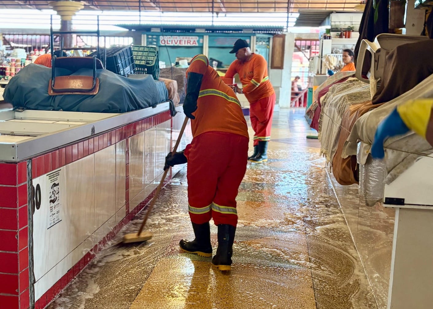 Durante a operação, as equipes atuaram nas áreas internas do mercado, com foco nos boxes de comercialização de frutas, verduras, legumes e cereais. Os serviços incluíram varrição, lavagem completa dos espaços, remoção de resíduos e entulhos acumulados, além da dedetização e da desratização — medidas fundamentais para prevenir a proliferação de pragas urbanas, como ratos e baratas.