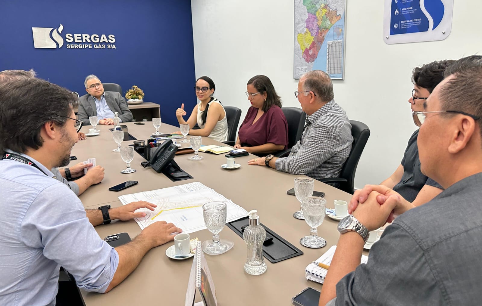 O diretor-presidente da Sergipe Gás S/A (Sergas), Alan Lemos, e o diretor Técnico e Comercial, Pablo Matsuo, se reuniram, na manhã desta quinta-feira, 15, com representantes da Secretaria de Estado do Desenvolvimento Urbano e Infraestrutura (Sedurbi) e da Constran Internacional Construções S/A, empresa responsável pela execução das obras do Complexo Viário Senadora Maria do Carmo Alves. O encontro teve como objetivo discutir e alinhar soluções relacionadas às interferências na rede de gás natural existentes na área onde está sendo implantado o empreendimento.