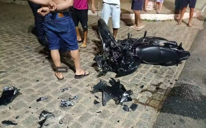 Um acidente envolvendo um carro de passeio e uma motocicleta deixou duas pessoas mortas na madrugada desta segunda-feira (08), em Nossa Senhora da Glória. Com o impacto da colisão, a motocicleta ficou completamente destruída.