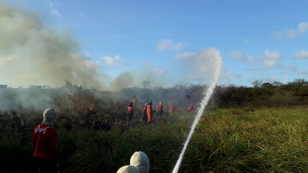 Um incêndio foi registrado em área de vegetação no município de São Cristóvão neste sábado, 17. O combate às chamas foi realziado em uma ação integrada entre o Corpo de Bombeiros Militar de Sergipe e o Grupamento Tático Aéreo (GTA).