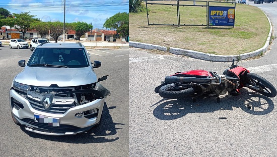 Um motociclista ficou ferido na tarde deste sábado, 6, na Rodovia João Bebe Água (SE-065), na entrada do Conjunto Eduardo Gomes, em São Cristóvão, após colidir contra um Renault Kwid prata, modelo Outside 2.