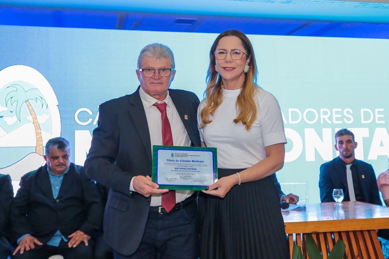 Nesta sexta-feira, 5, a deputada federal Delegada Katarina recebeu o título de Cidadã Moitense, em sessão solene realizada pela Câmara Municipal de Moita Bonita. A homenagem foi proposta pelo vereador Zé de Elício e aprovada por unanimidade pelos parlamentares.