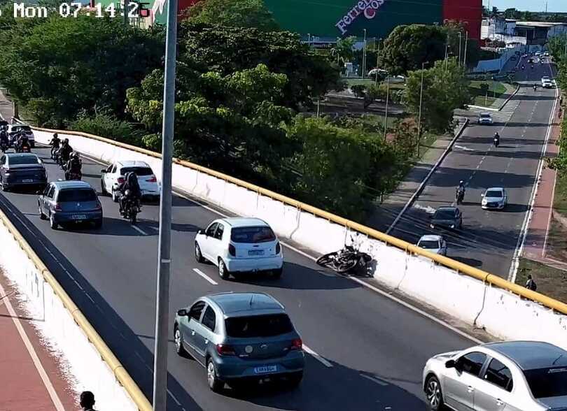 VÍDEO: Câmera de monitoramento flagra motociclista caindo de viaduto em Aracaju