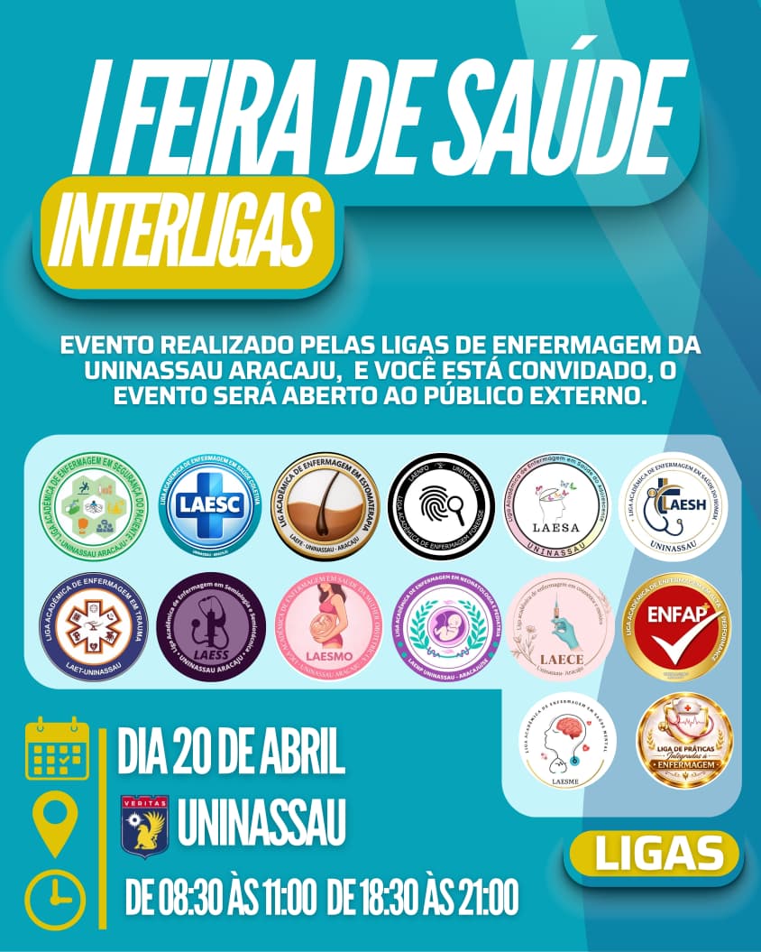 O UNINASSAU – Centro Universitário Maurício de Nassau Aracaju, por meio das Ligas Acadêmicas do curso de Enfermagem, realiza a I Feira de Saúde Interligas. Ela acontece no dia 20 de abril, nos turnos da manhã e noite, na própria Instituição. O evento é gratuito e aberto ao público.