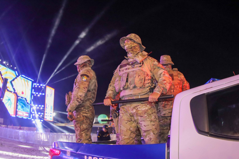 O efetivo contou também com a participação do Batalhão de Polícia de Ações Táticas do Interior (BPATI), da Companhia Independente de Policiamento com Cães (CipCães), do Grupamento Tático Aéreo (GTA), além do policiamento de área, que atuou de forma coordenada dentro e fora do evento festivo.